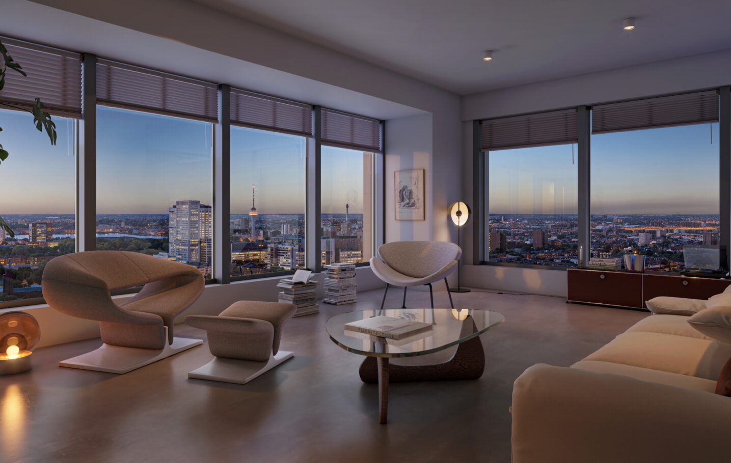 The Modernist’s 88 owner-occupied apartments are luxurious, comfortable, sustainable, future-proof and energy-efficient. Above all, they are very special places to live. Right in the heart of Rotterdam, with the vibe of the city at your feet and high enough above ground to guarantee privacy and fantastic views.